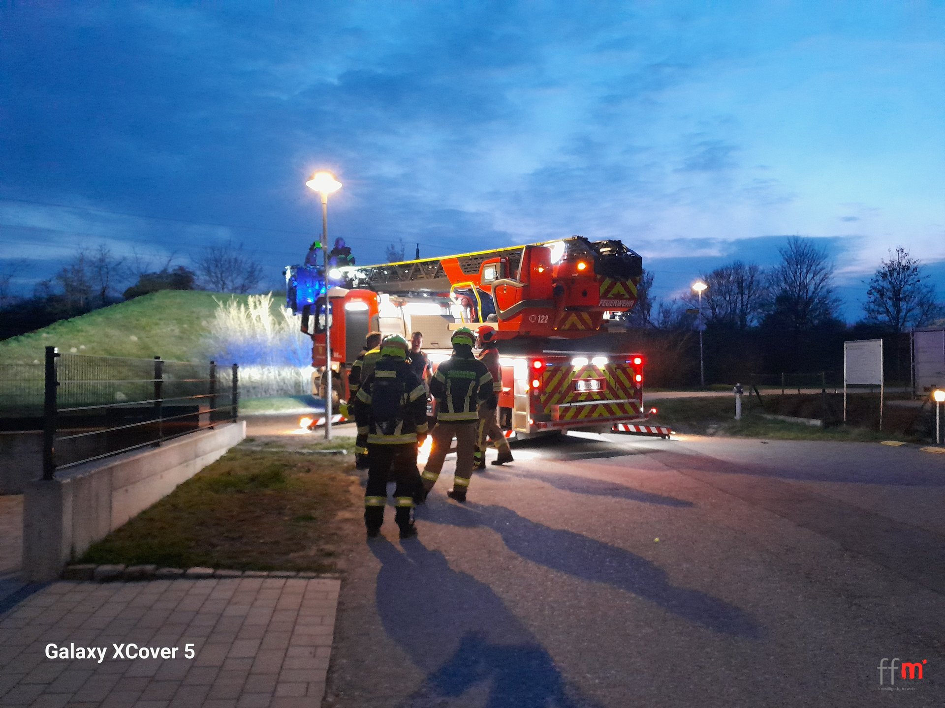 Als wir am Einsatzort eintreffen können wir nirgends Rauch wahrnehmen. Allerdings haben sich bei Sonnenuntergang einige dunkle Wolkenformationen über den Gebäuden gebildet, welch vermutlich von der alarmierenden Person für Rauch gehalten wurde.
