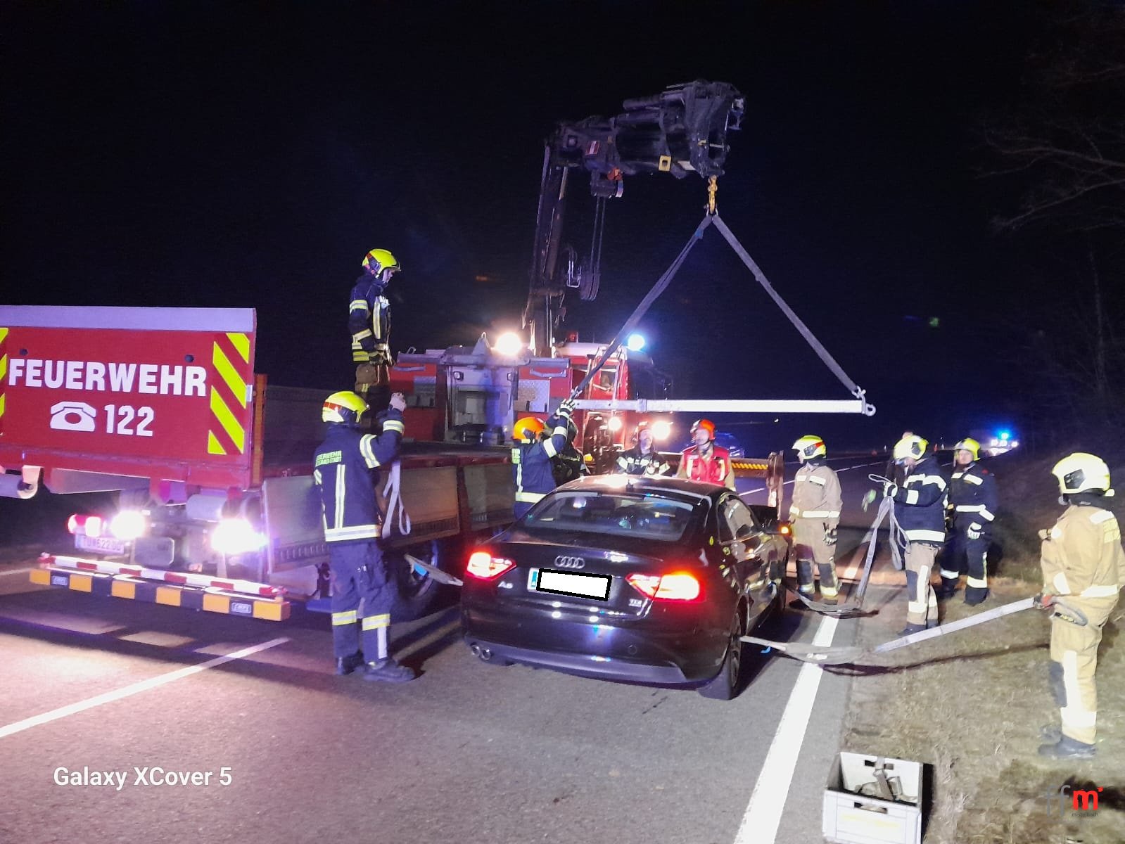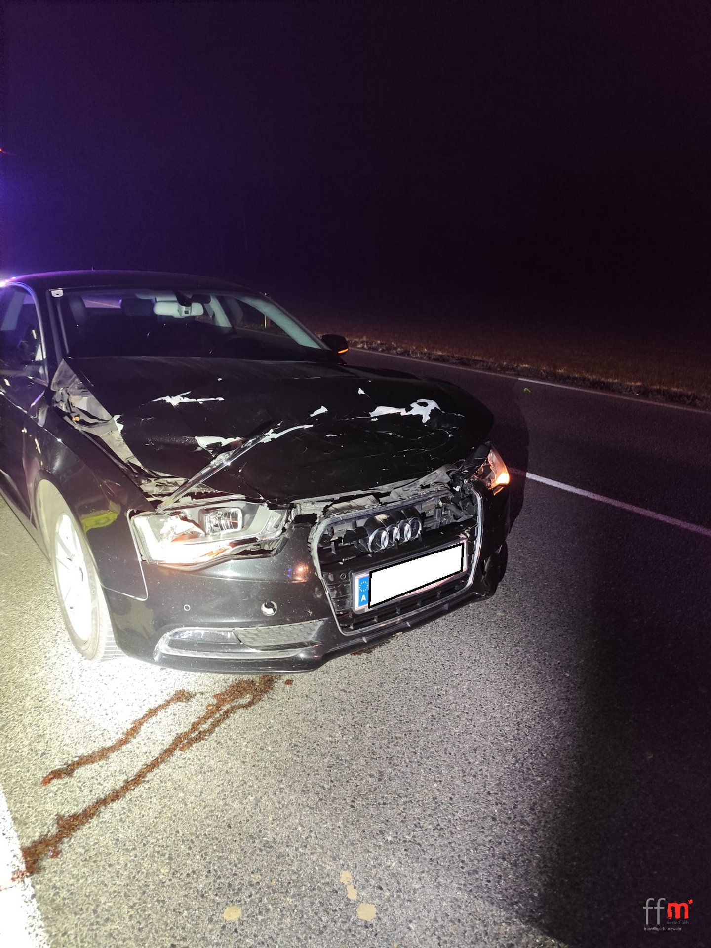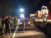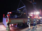 Ein PKW ist mit einer Hirschkuh kollidiert und steht nun fahruntüchtig auf der Fahrbahn. Um den PKW möglichst schnell von der Fahrbahn zu entfernen wird die B 46 kurzzeitig in beide Fahrtrichtungen gesperrt und wir verladen den PKW auf den Wechsellader um ihn gesichert abzustellen. Die FW Lanzendorf reinigt die Fahrbahn von ausgeflossenen Betriebsmitteln.