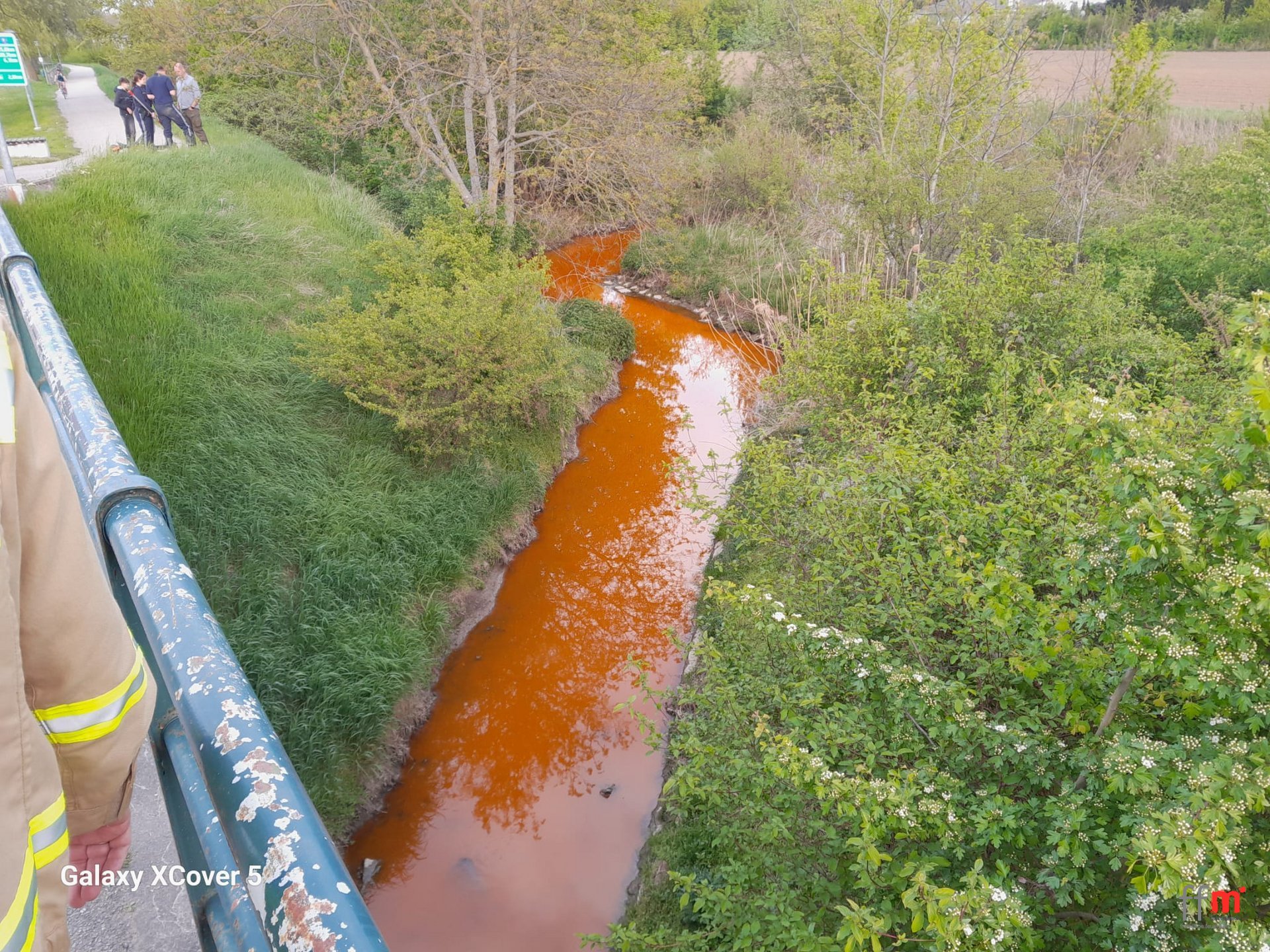 Gemeinsam mit der Polizei, der Wasserrechtsbehörde, der Gemeinde sowie Chemikern der Schadstoffgruppe standen wir im Einsatz. Trotz der Färbung des Wassers bestand keine Gefahr für die Umwelt. Der Kanal aus dem die Verunreinigung austrat wurde von uns gespült.