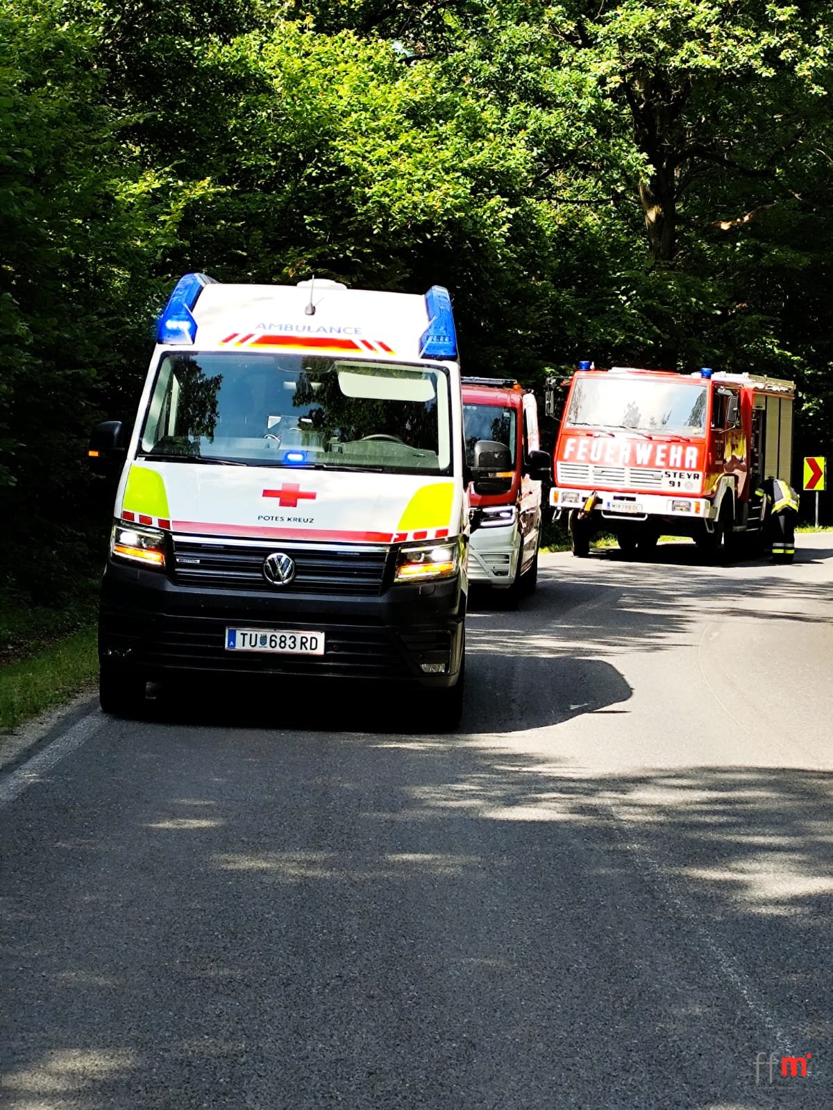 Anwesend: Notarzt, Rotes Kreuz, Polizei