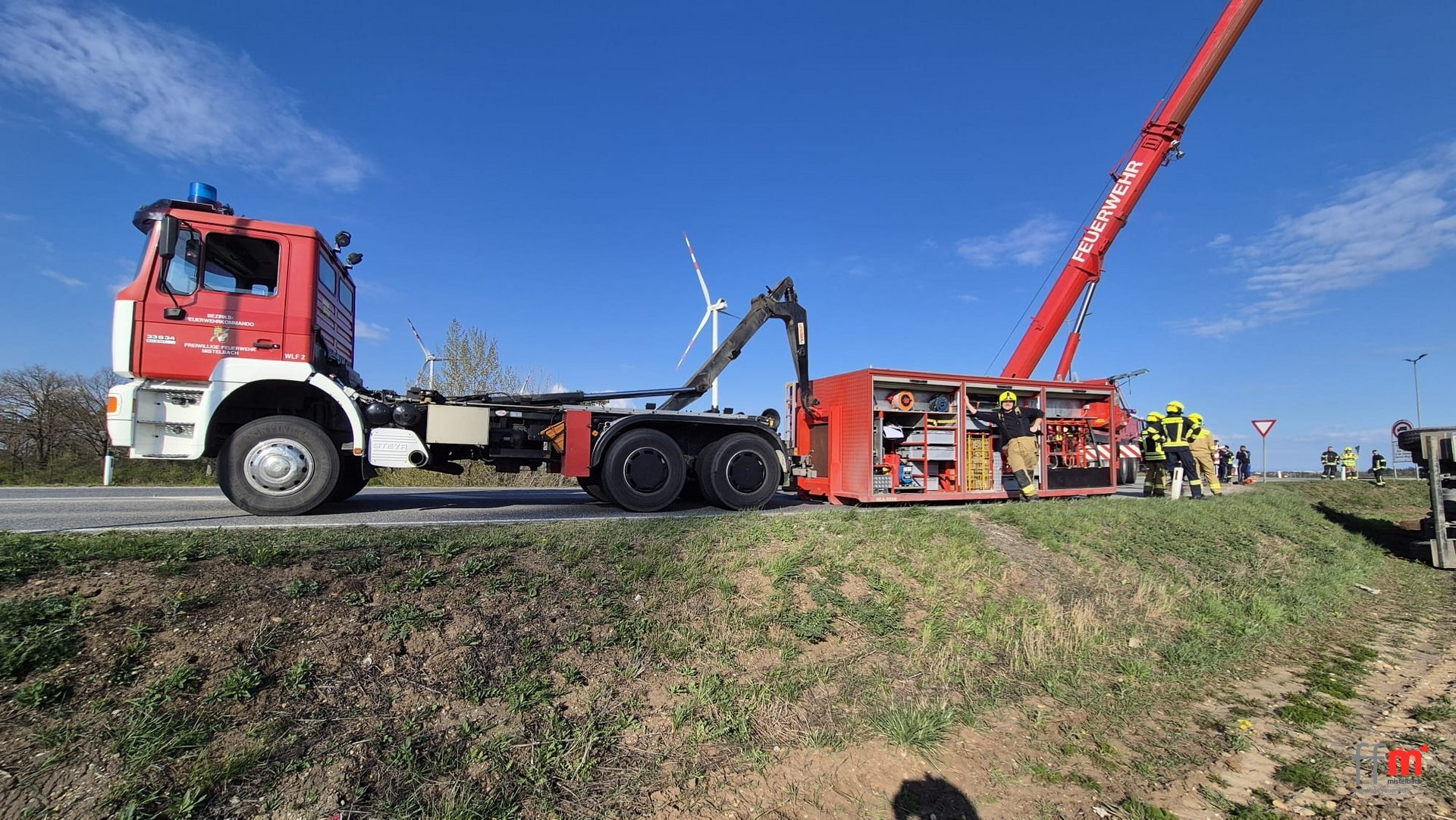 Am Nachmittag werden wir von der FF Deutsch Wagram zu einer LKW Bergung hinzugezogen.