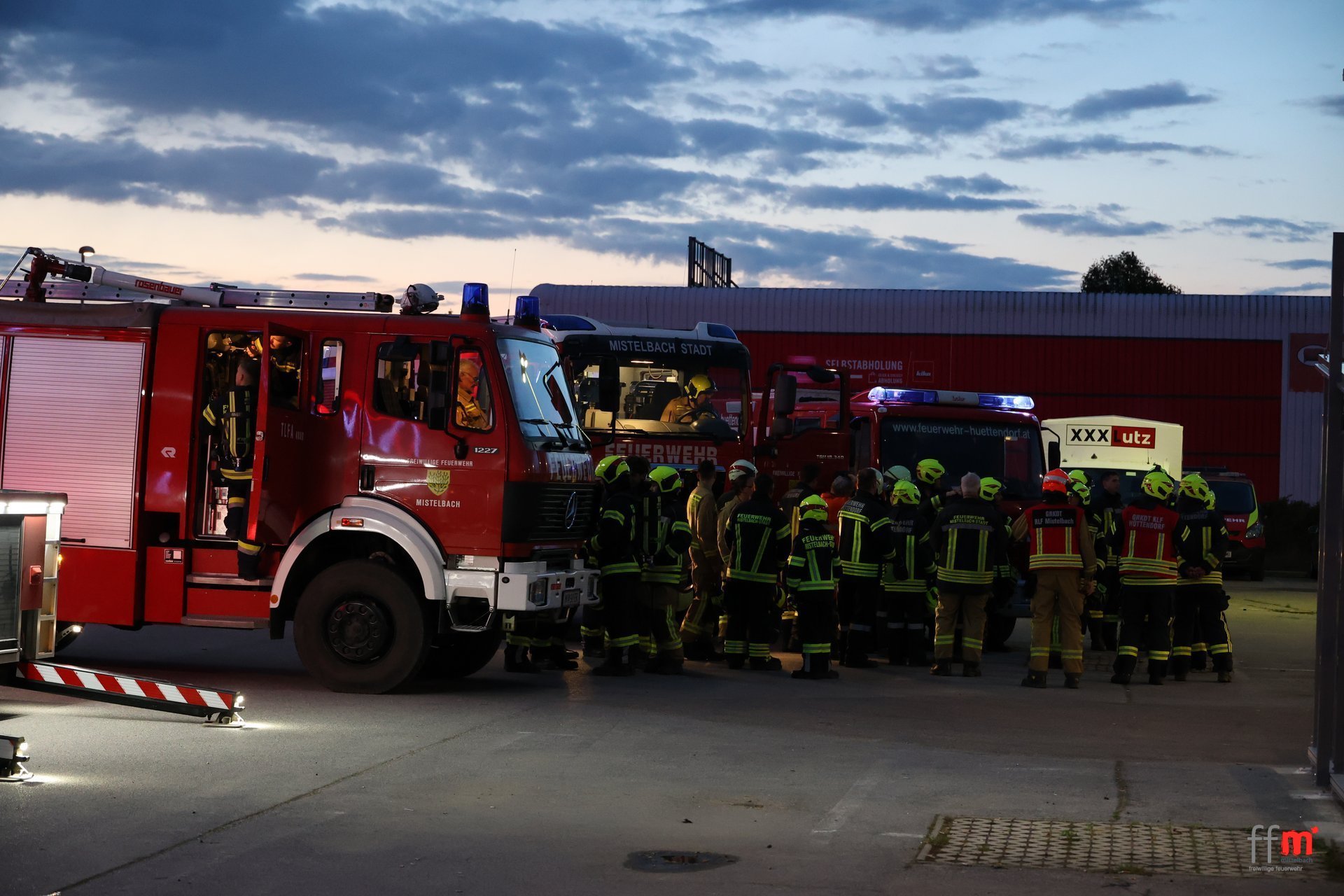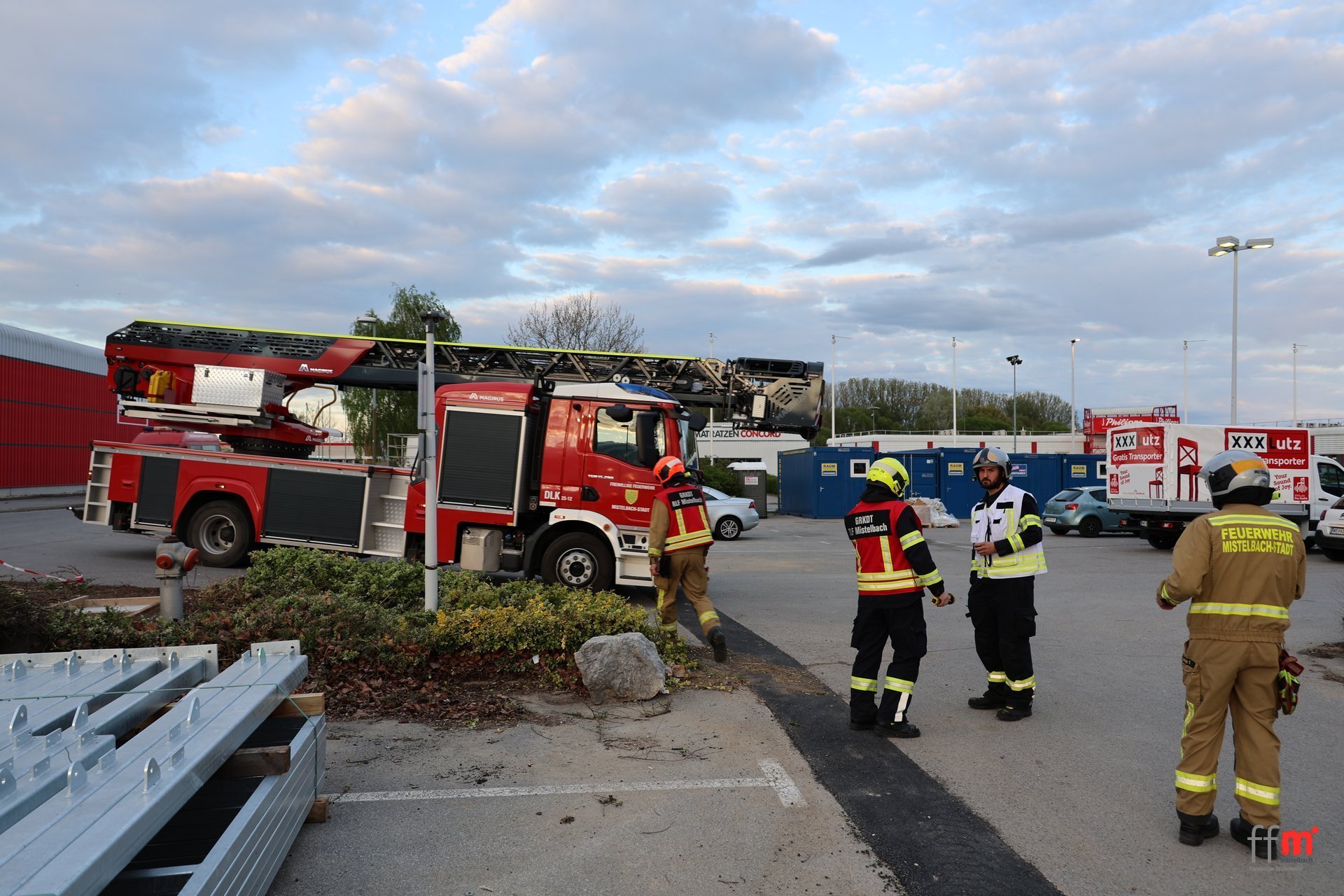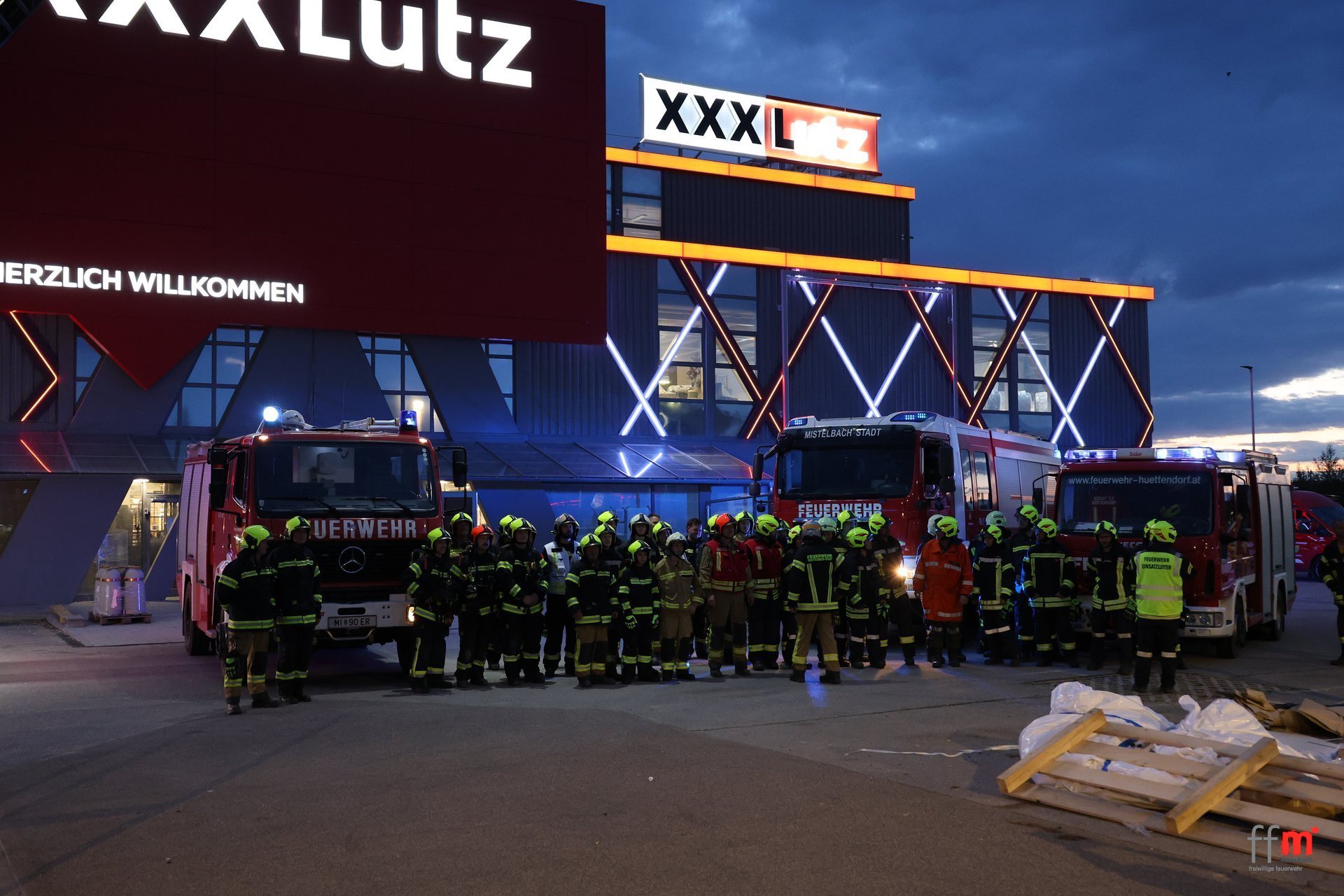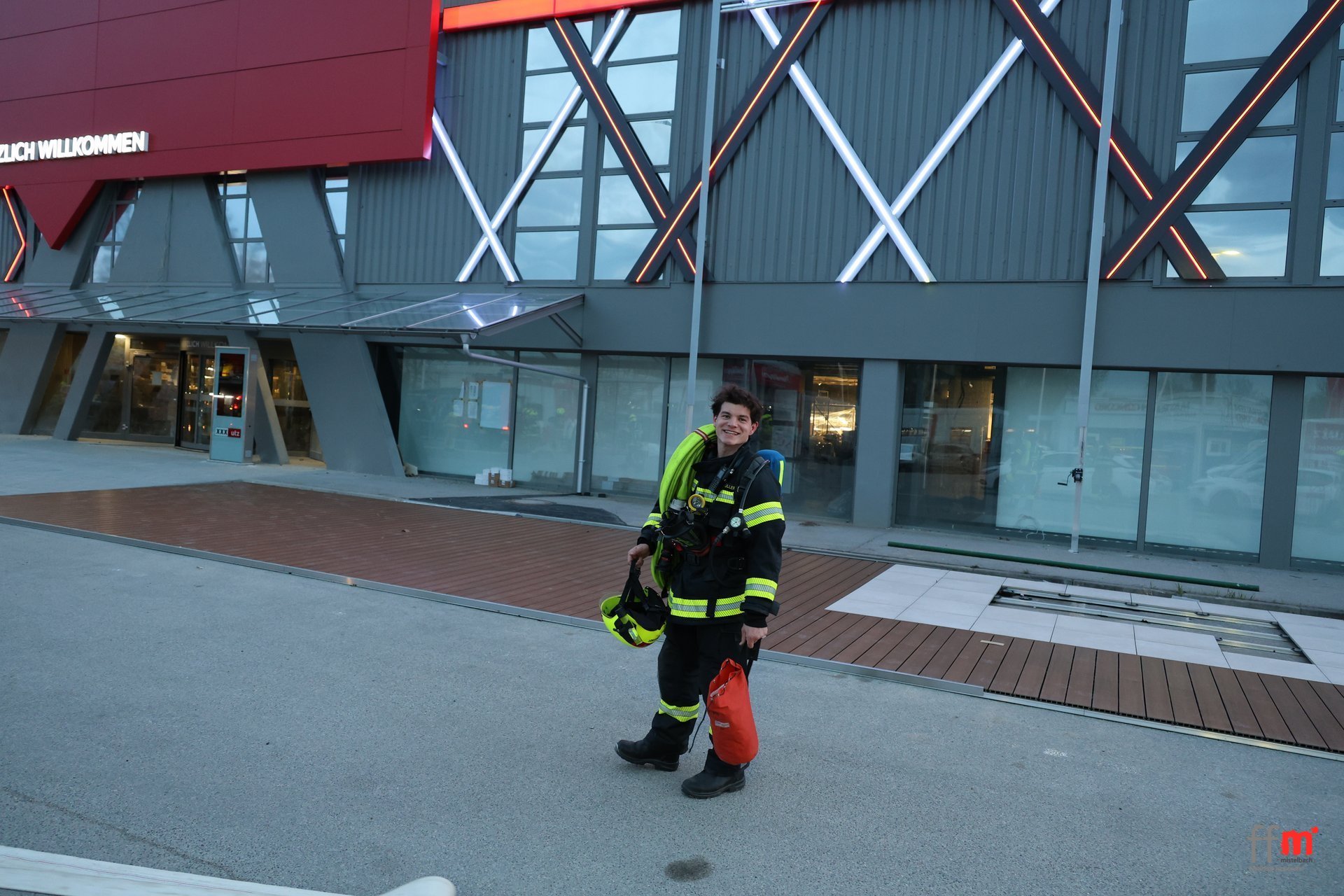 Am Montag übten wir gemeinsam mit der örtlich zuständigen FF Hüttendorf einen Brandeinsatz beim neuen XXXLutz.