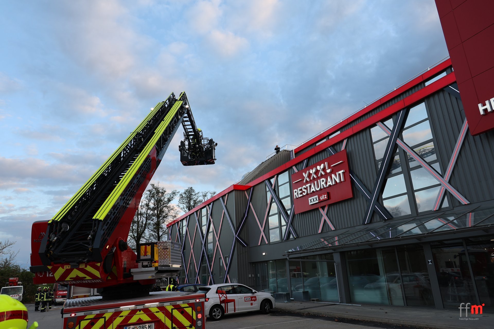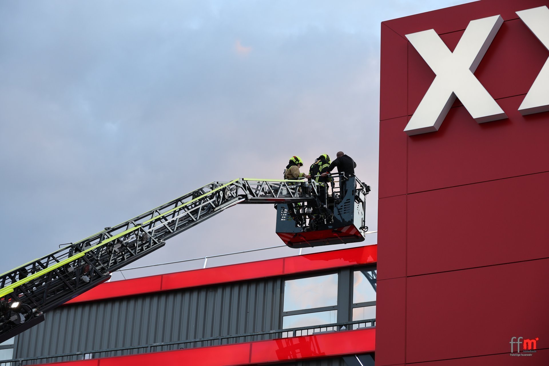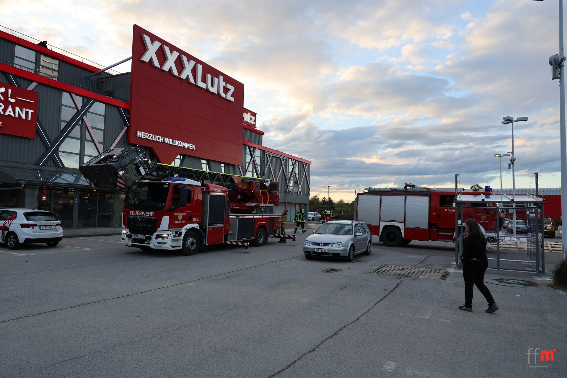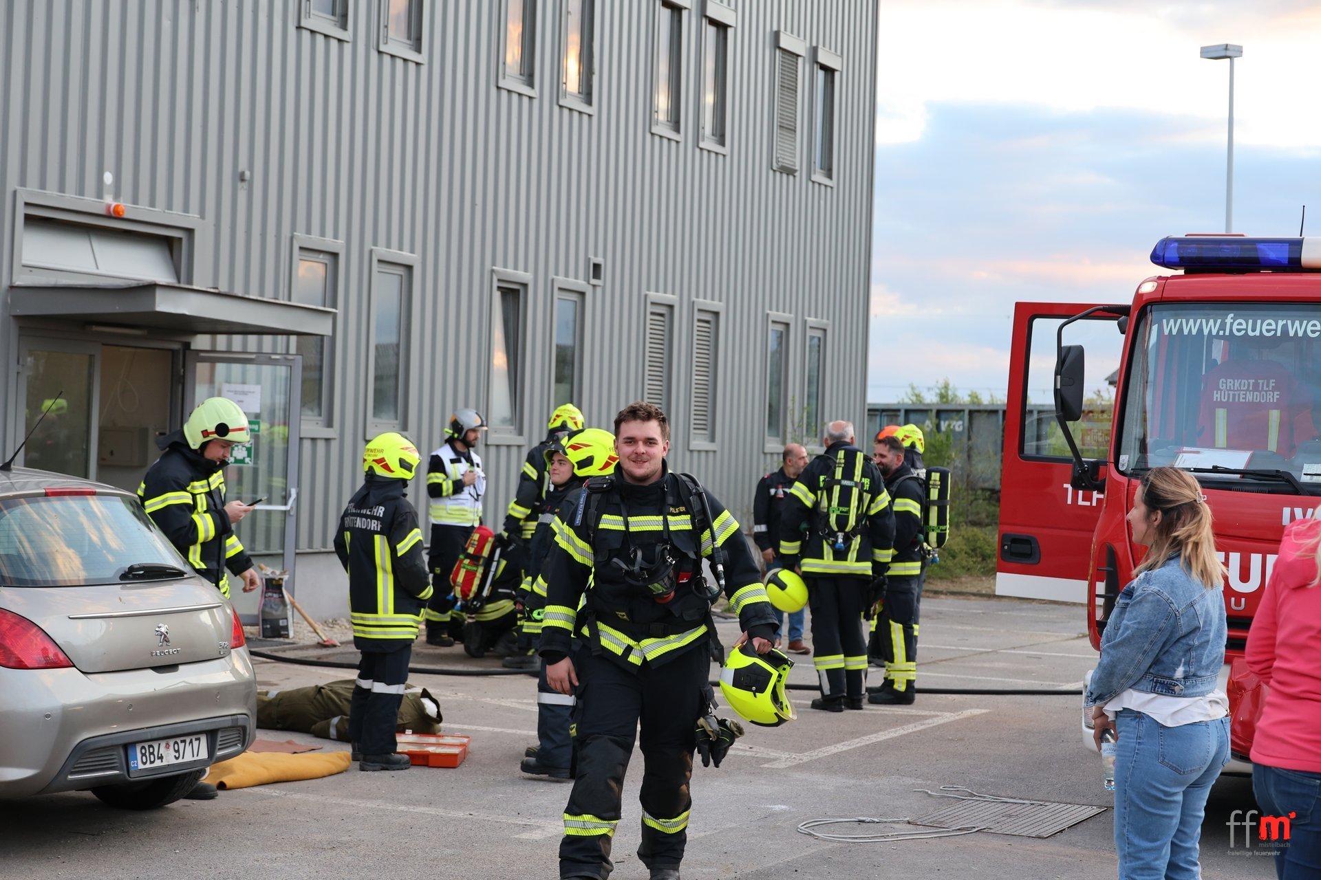 Am Montag übten wir gemeinsam mit der örtlich zuständigen FF Hüttendorf einen Brandeinsatz beim neuen XXXLutz.
