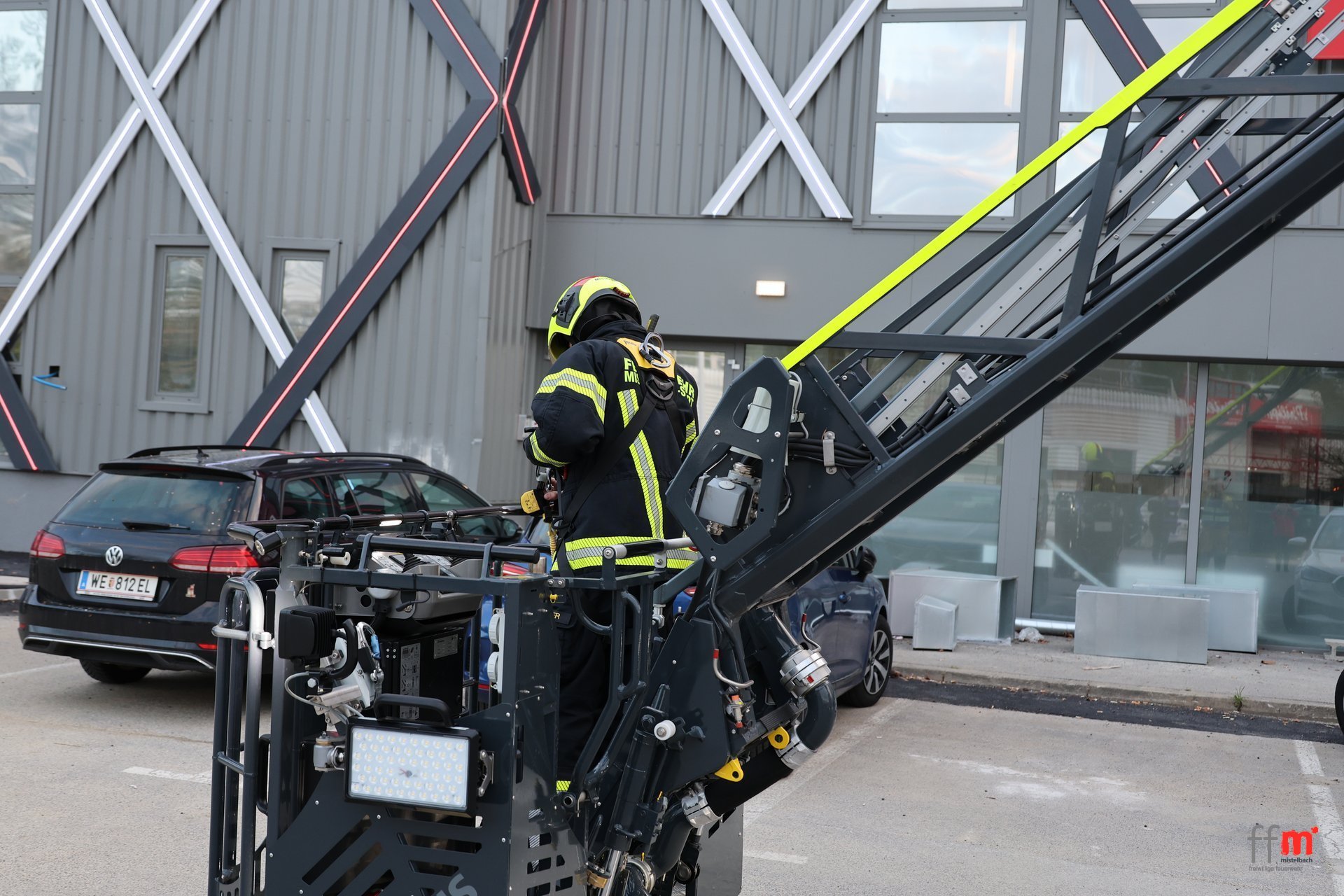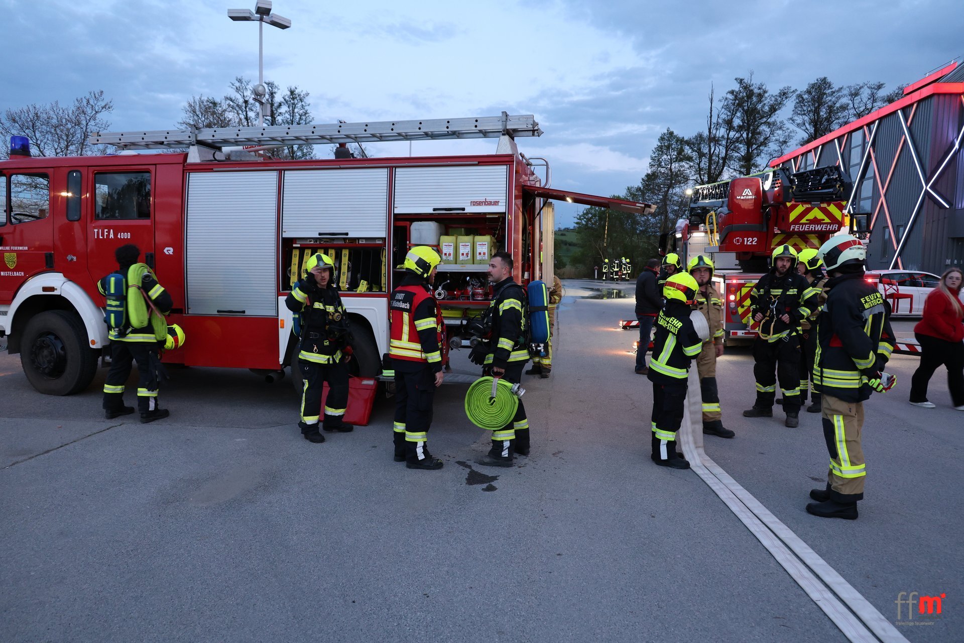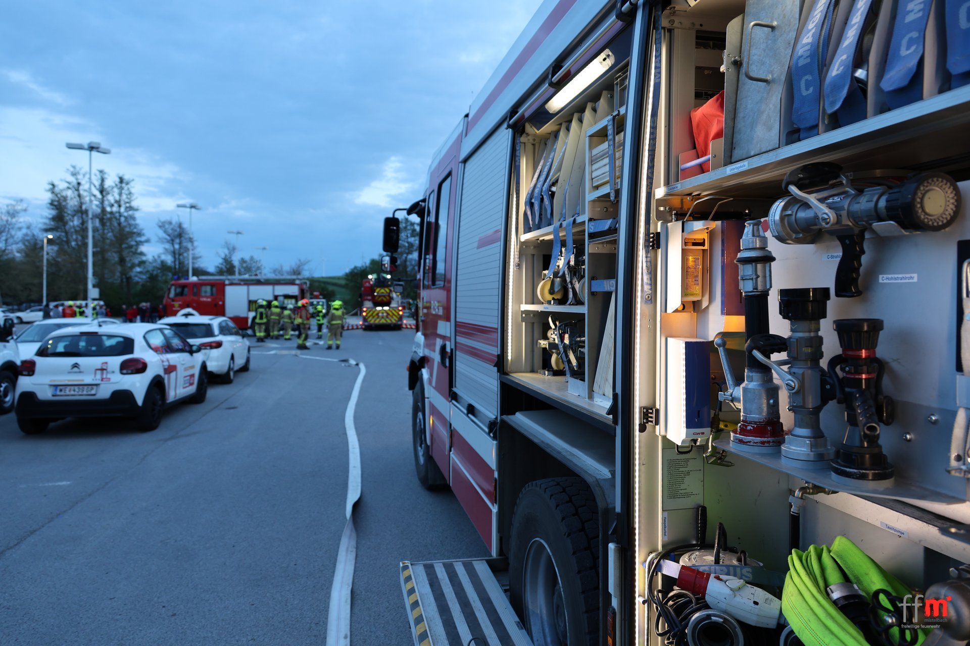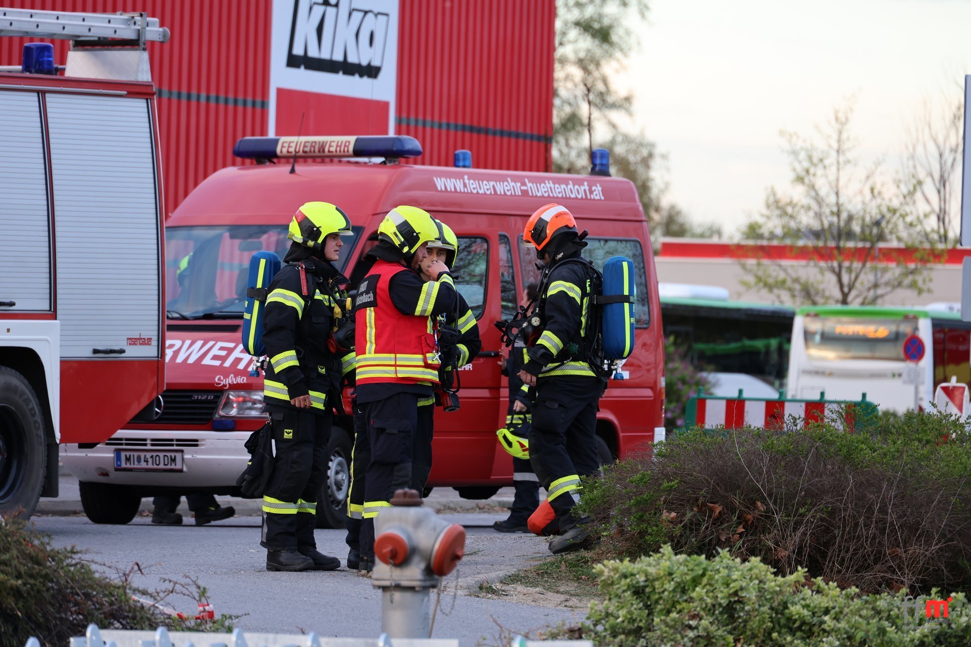 Am Montag übten wir gemeinsam mit der örtlich zuständigen FF Hüttendorf einen Brandeinsatz beim neuen XXXLutz.