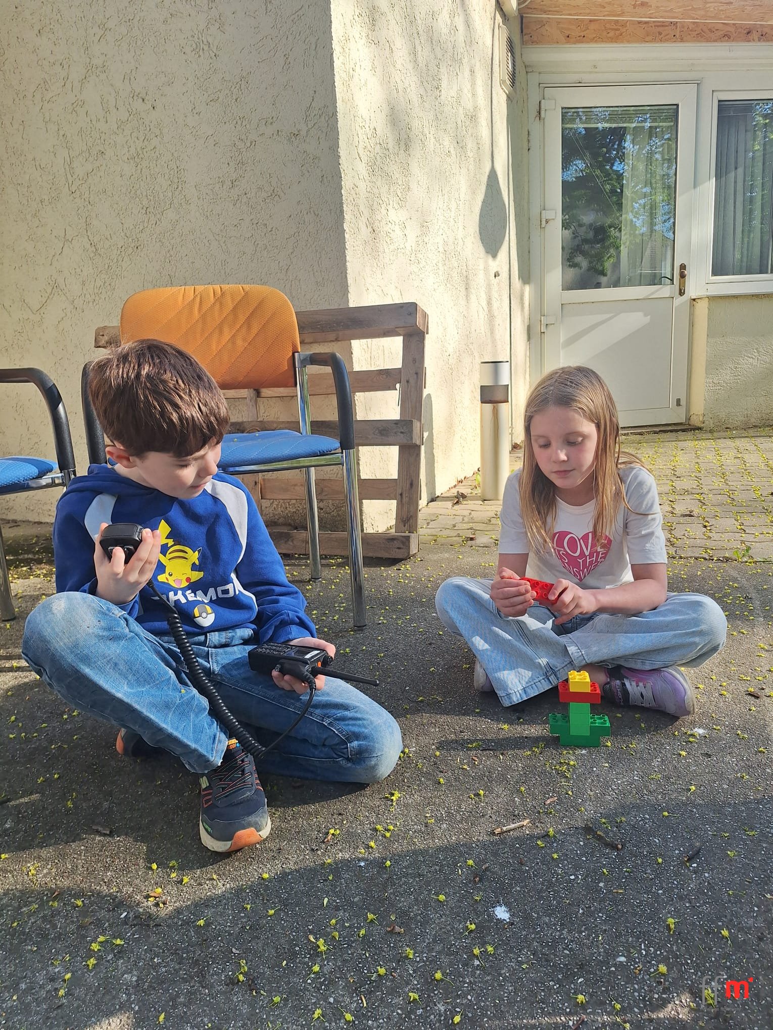 Für eine besonders abwechslungsreiche und spannende Übung sorgte eine kreative Aufgabe: Über Funk mussten Anweisungen so weitergegeben werden, dass von den Kindern zwei Legofiguren korrekt nachgebaut werden konnten. Dabei zeigte sich schnell, wie wichtig klare und verständliche Kommunikation ist. Mit jedem Funkspruch wurden die Kinder sicherer und routinierter im Umgang mit dem Funkgerät.